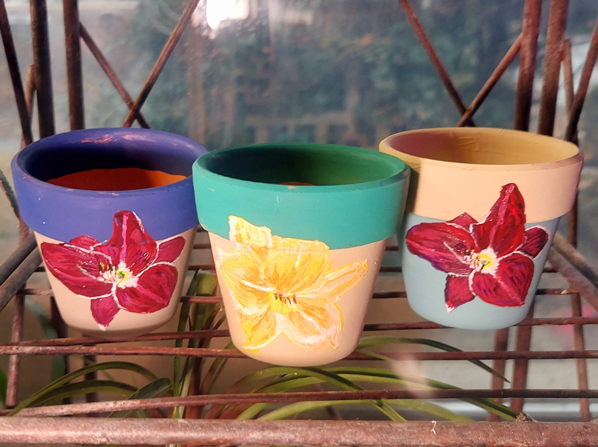 Bring a touch of nature's elegance inside with this exquisitely handpainted 2.5-inch succulent pot, featuring a vibrant daylily design sure to enliven any space. Each miniature planter is crafted with love and care, making it a unique statement piece for your home or office. Perfectly sized for your favorite succulents or small plants, this delightful pot also makes an ideal gift for plant lovers and art enthusiasts alike. Choose from a variety of designs to match your style or start a collection that will bring joy and color to your daily life. Don't miss out – these small batches of botanical art are ready to nurture your green thumb and creativity!