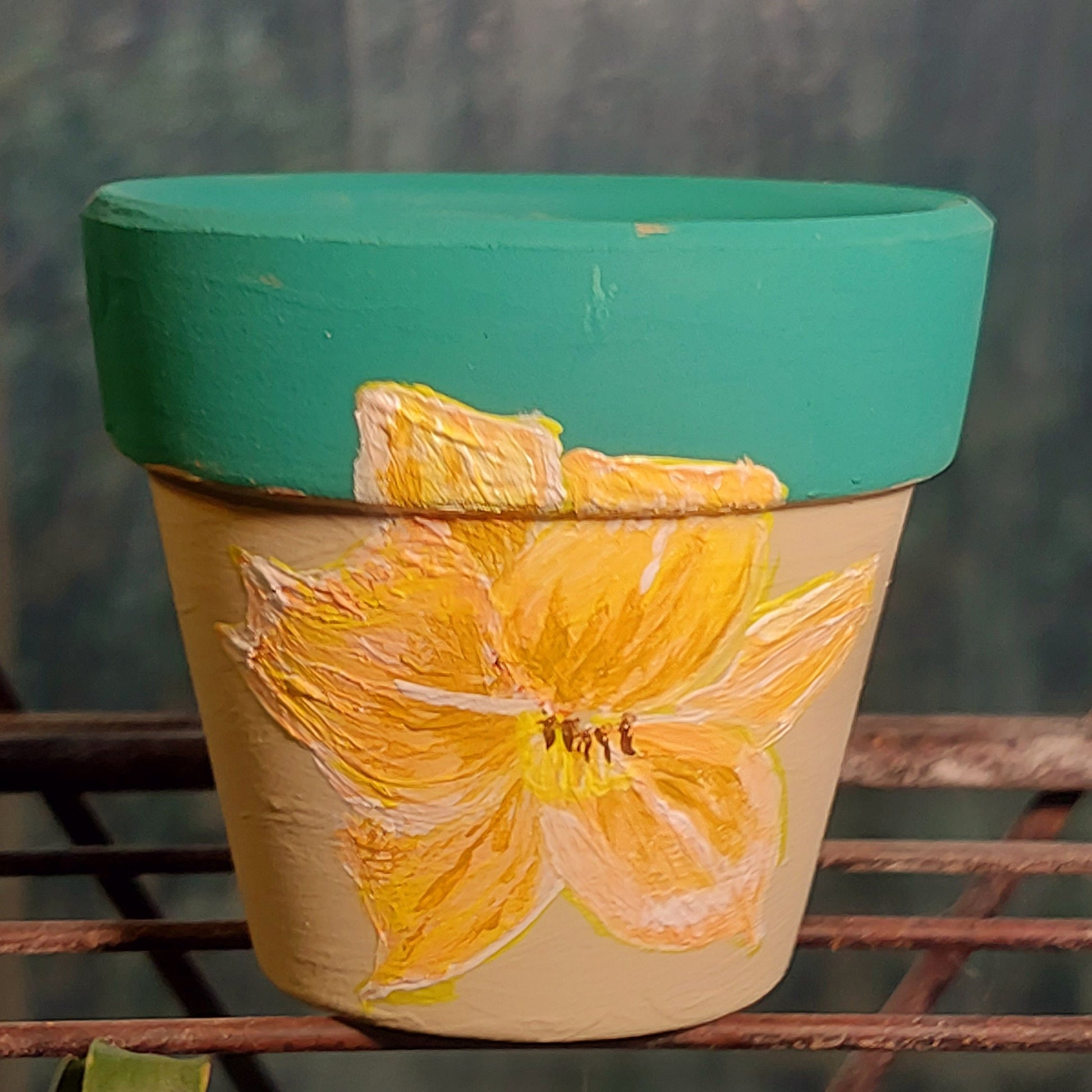 Charming Handpainted Daylily Succulent Pot - Artistic Miniature 2.5 Planter for Home Decor