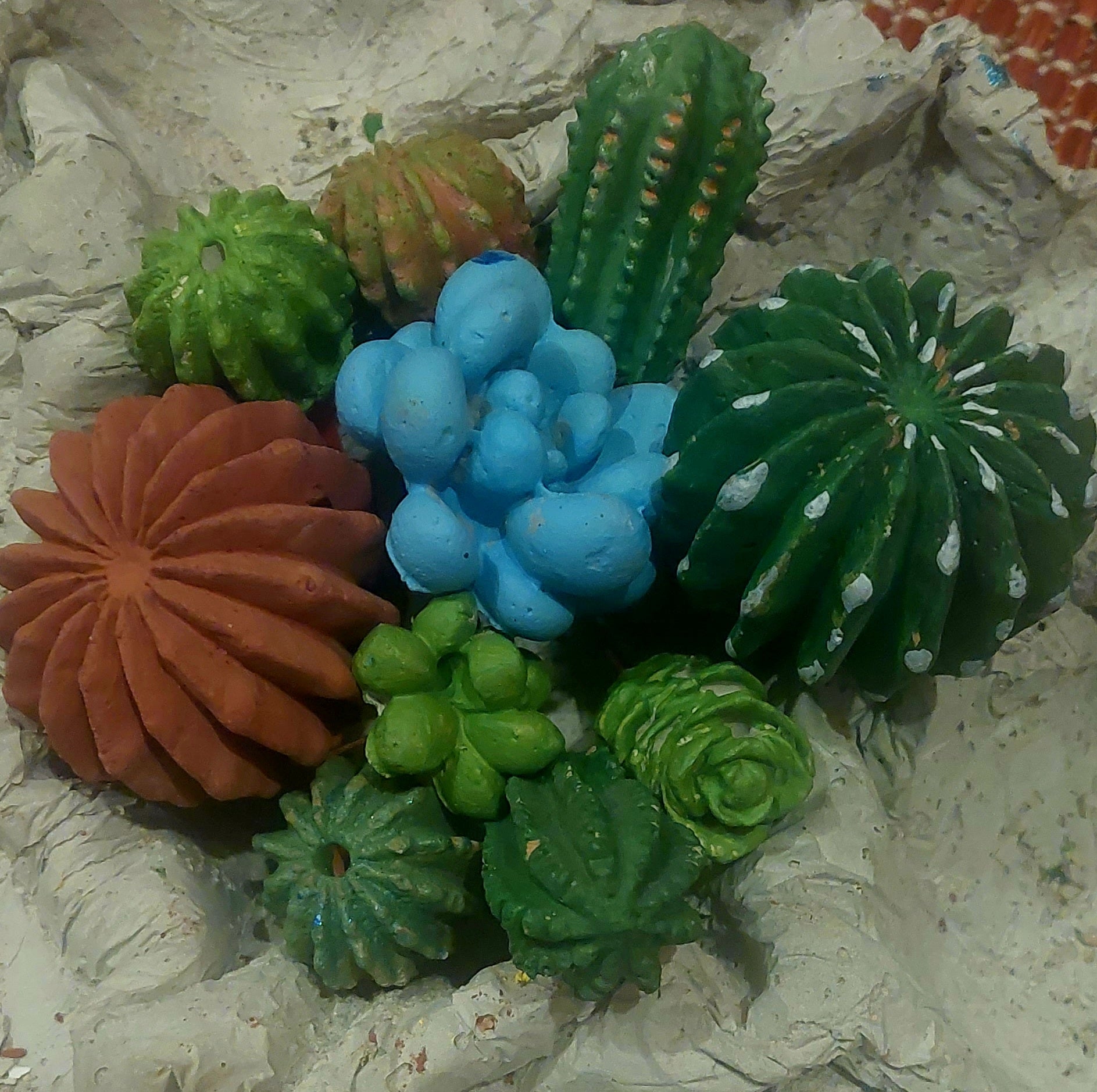 Colorful Pebble Cement Succulent Planter | Small Round Decorative Pot with Optional Faux Plants