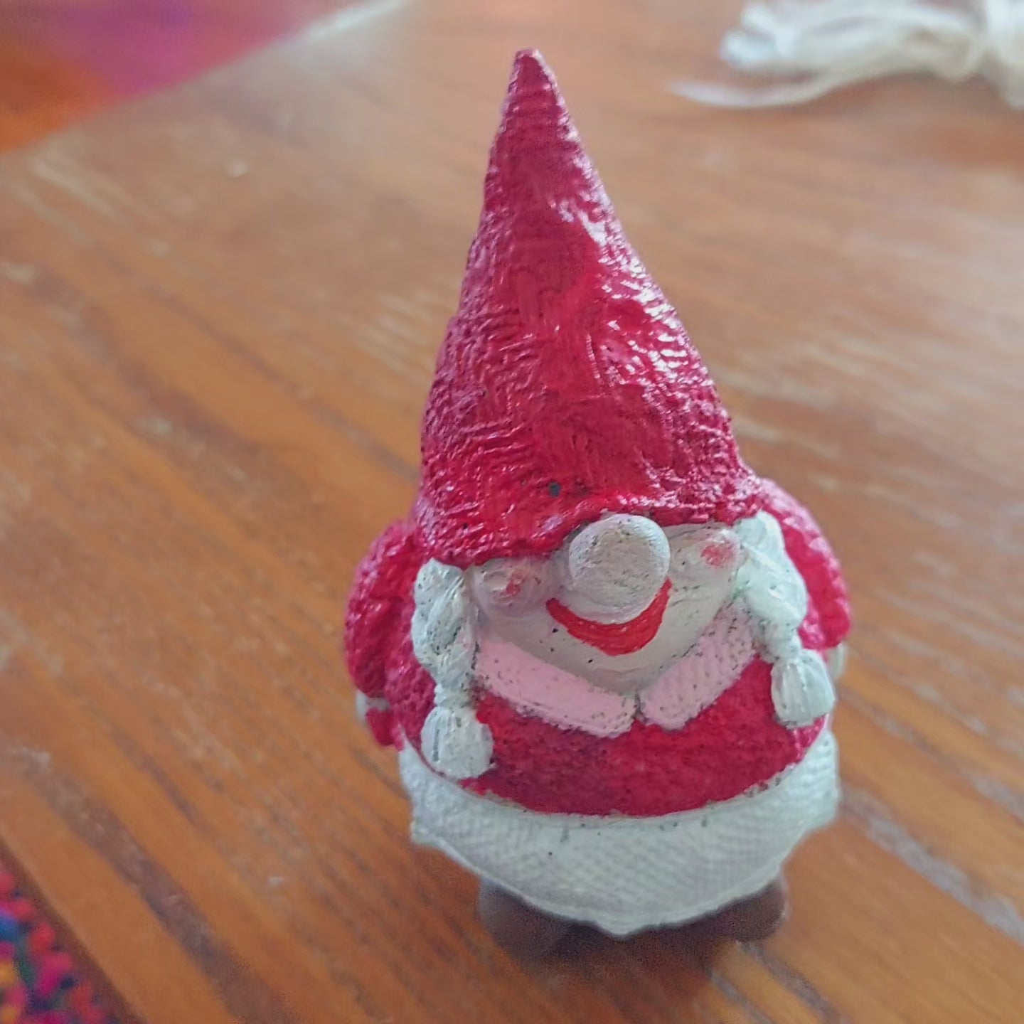 Adorable handmade gnomes made with molds imported from Sweden (where gnomes originated). These cement figurines are painted in bright acrylic paint in various combinations. Every gnome is unique and different from the others.