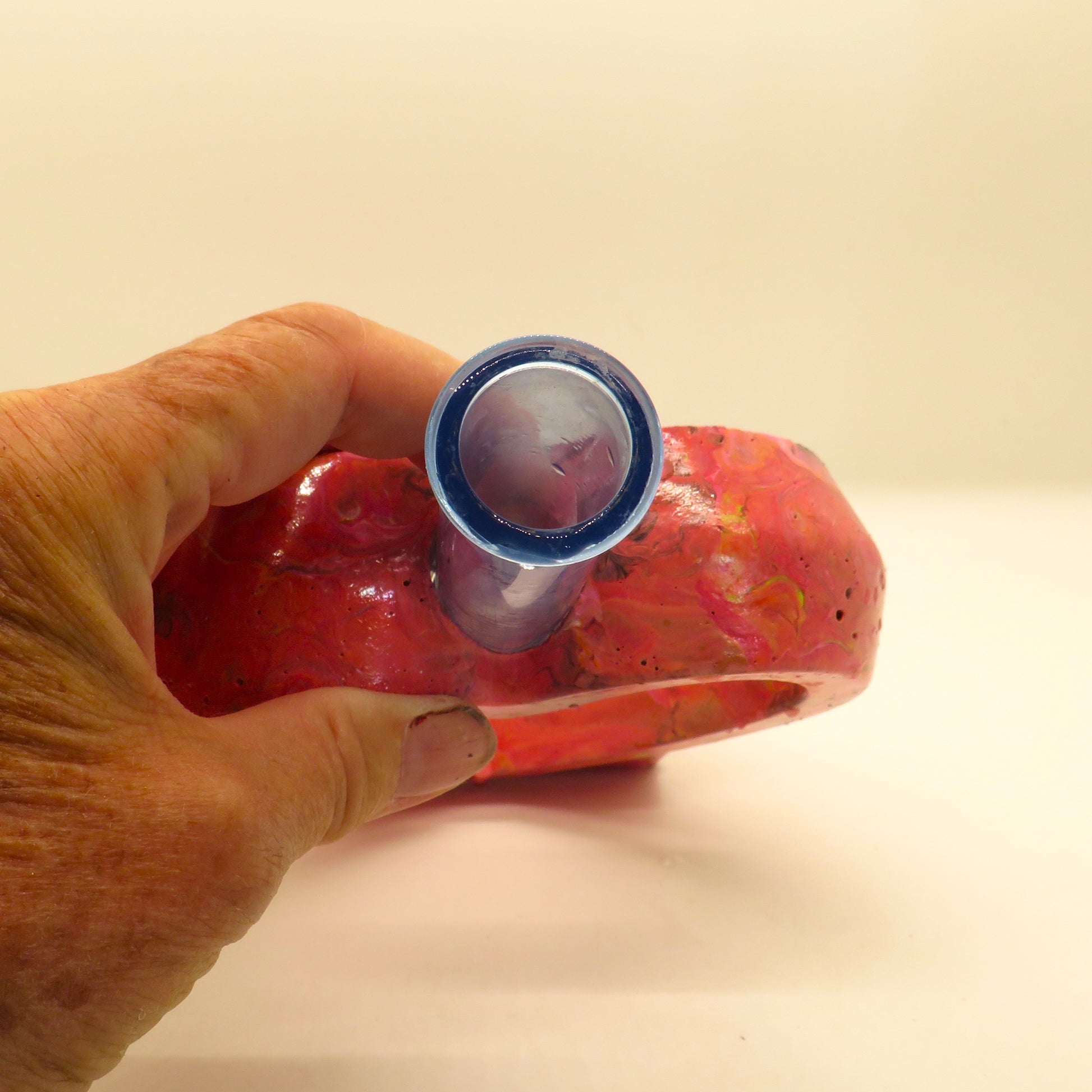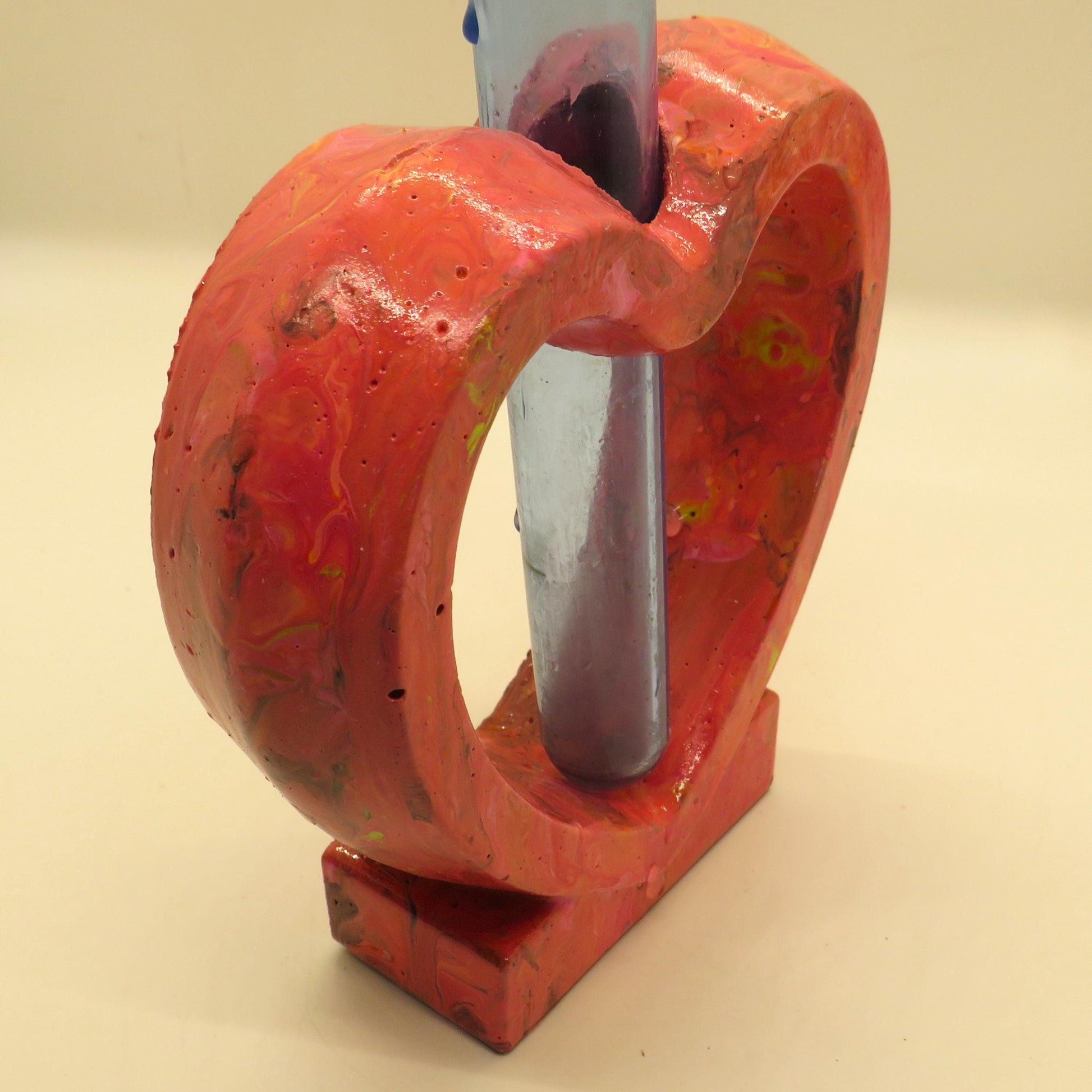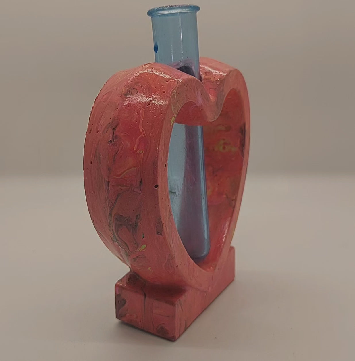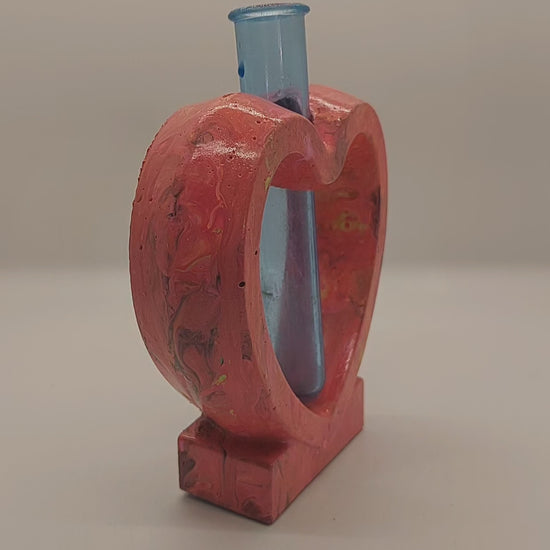 Add a splash of color to your decor with this vibrant cement heart test tube vase, perfect for rooting cuttings from your favorite plants. Each heart is hand-painted in a unique pour paint pattern, ensuring no two are alike. Ideal as a Valentine's gift for plant lovers, this charming piece is both functional and decorative. Custom colors are available on request, allowing you to tailor it to your taste. Please note, plant not included. Elevate your plant-growing experience with this one-of-a-kind rooting tube holder.