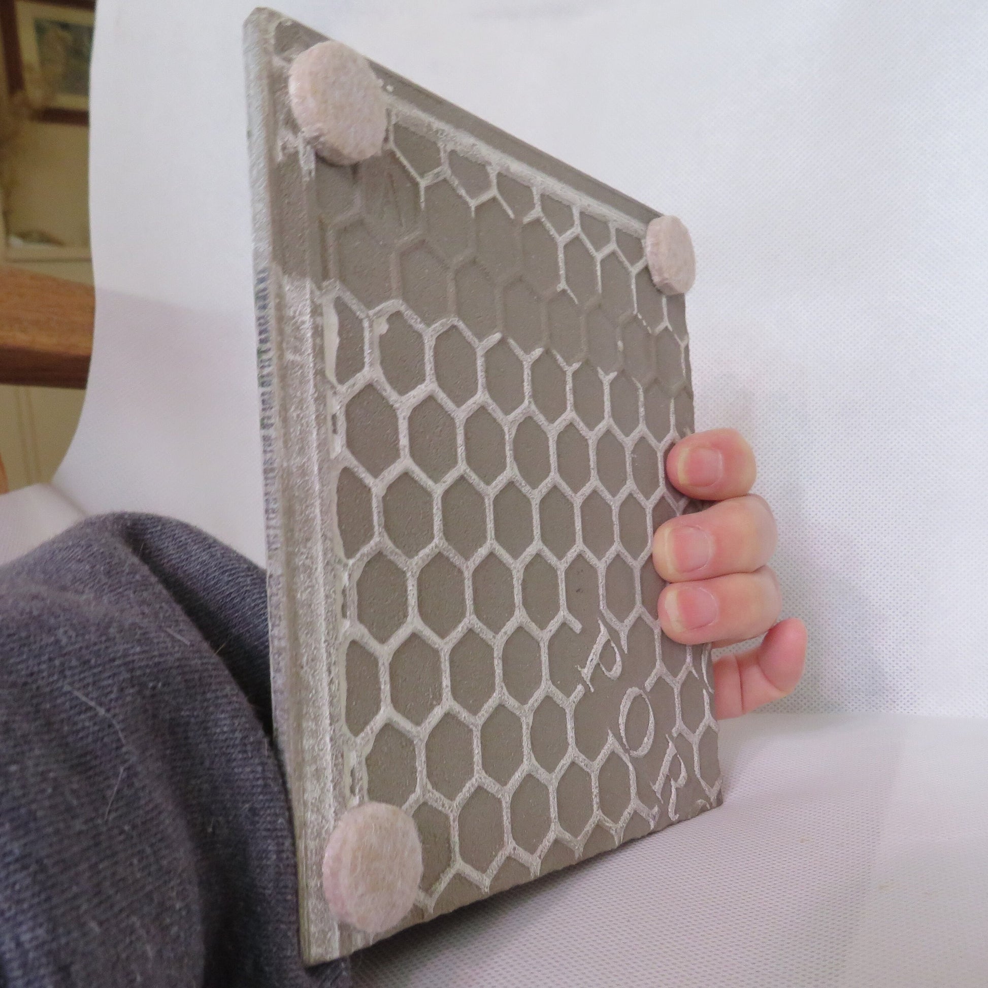 I use tiles from Habitate for Humanity, giving your decorative tile an amazing history. I use colorful acrylic paint and seal with engine enamel, so the paint can withstand temperatures from any hot beverage. The bottom has felt feet to assure that it won't scratch your surfaces.