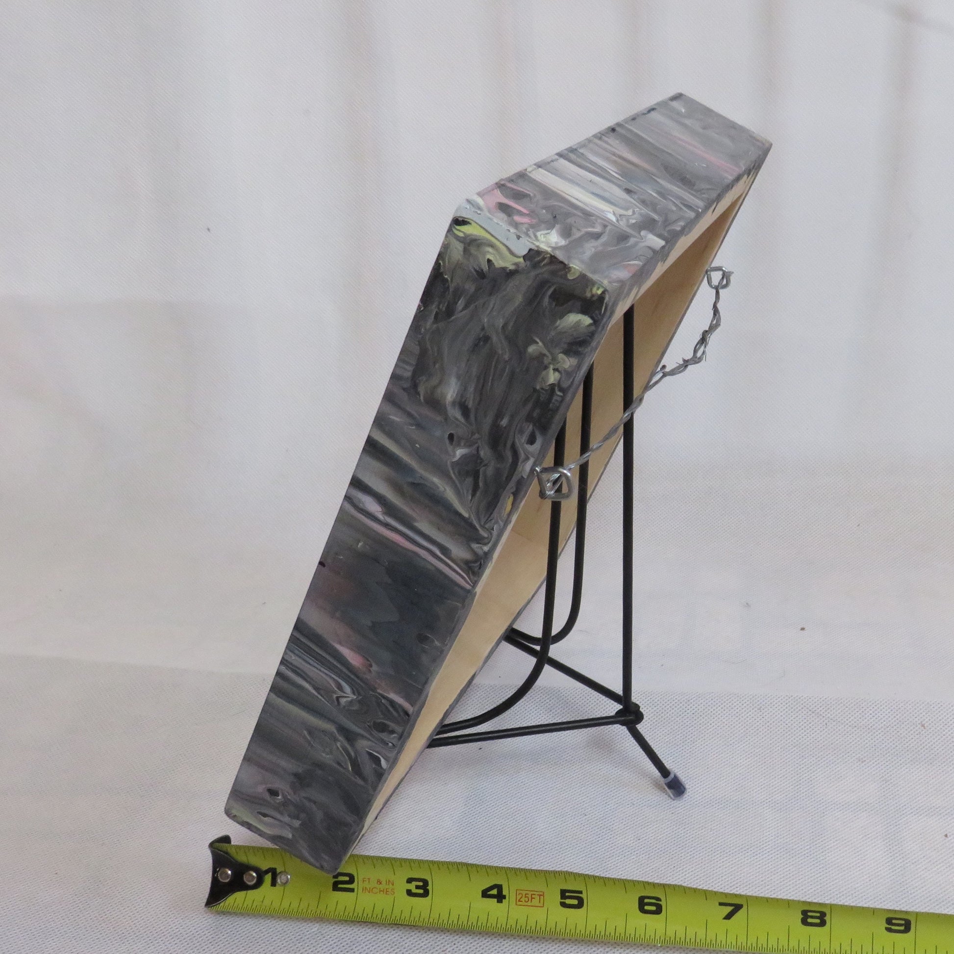 Add a touch of elegance and creativity to your home with this stunning 8x8 wood panel hand-painted fluid art clock. Titled Pink Synapse, it features captivating pink details on a grey/black background, creating a mesmerizing visual experience. This clock is sealed with durable engine enamel and finished with a hanging wire for easy installation, ensuring it remains beautiful and functional for years to come. AA batteries are included, making it a perfect gift or addition to your own home décor. Enjoy the unique, artistic flair of this one-of-a-kind timepiece!
