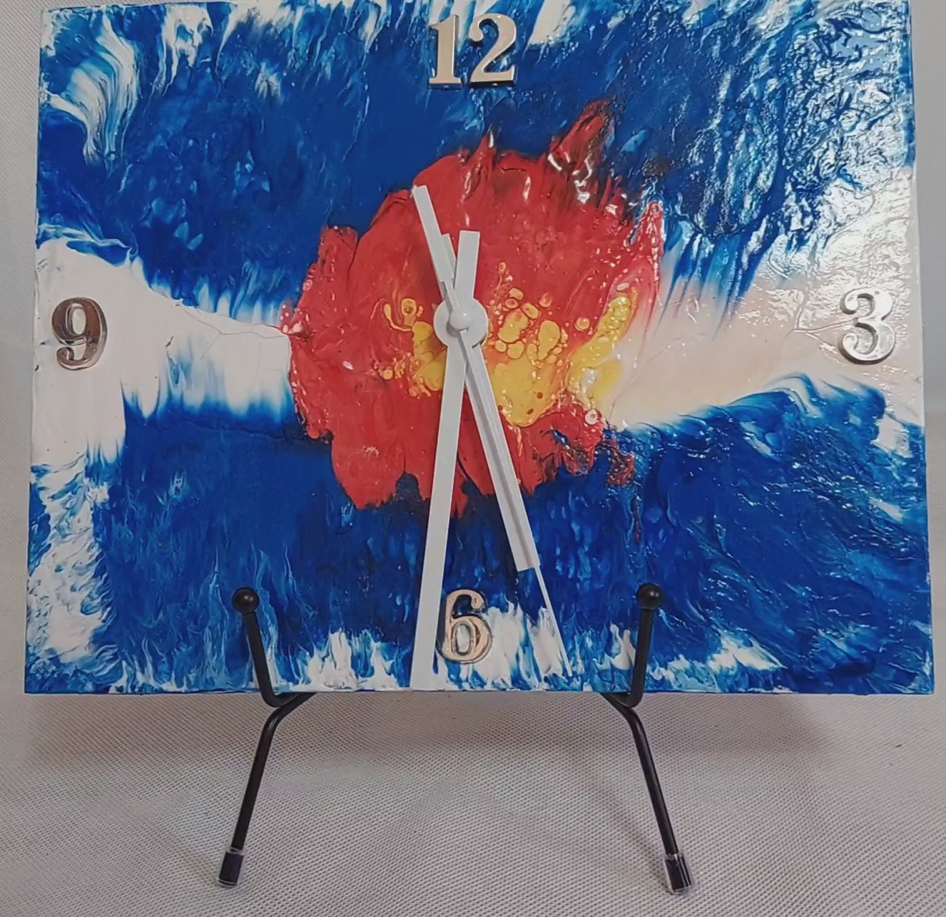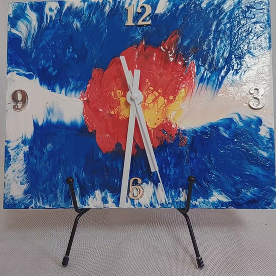 Add a touch of Colorado pride to your home with this stunning pour paint art clock featuring the vibrant Colorado State Flag design. This unique piece is crafted on an 8x10 Habitat recycled tile, making it a perfect blend of art and functionality. Handmade in Colorado, this eco-friendly clock will brighten up any room with its vivid colors and intricate design. Perfect as a gift for any occasion or as a standout piece in your own decor. Order now to bring the beauty of Colorado into your home!