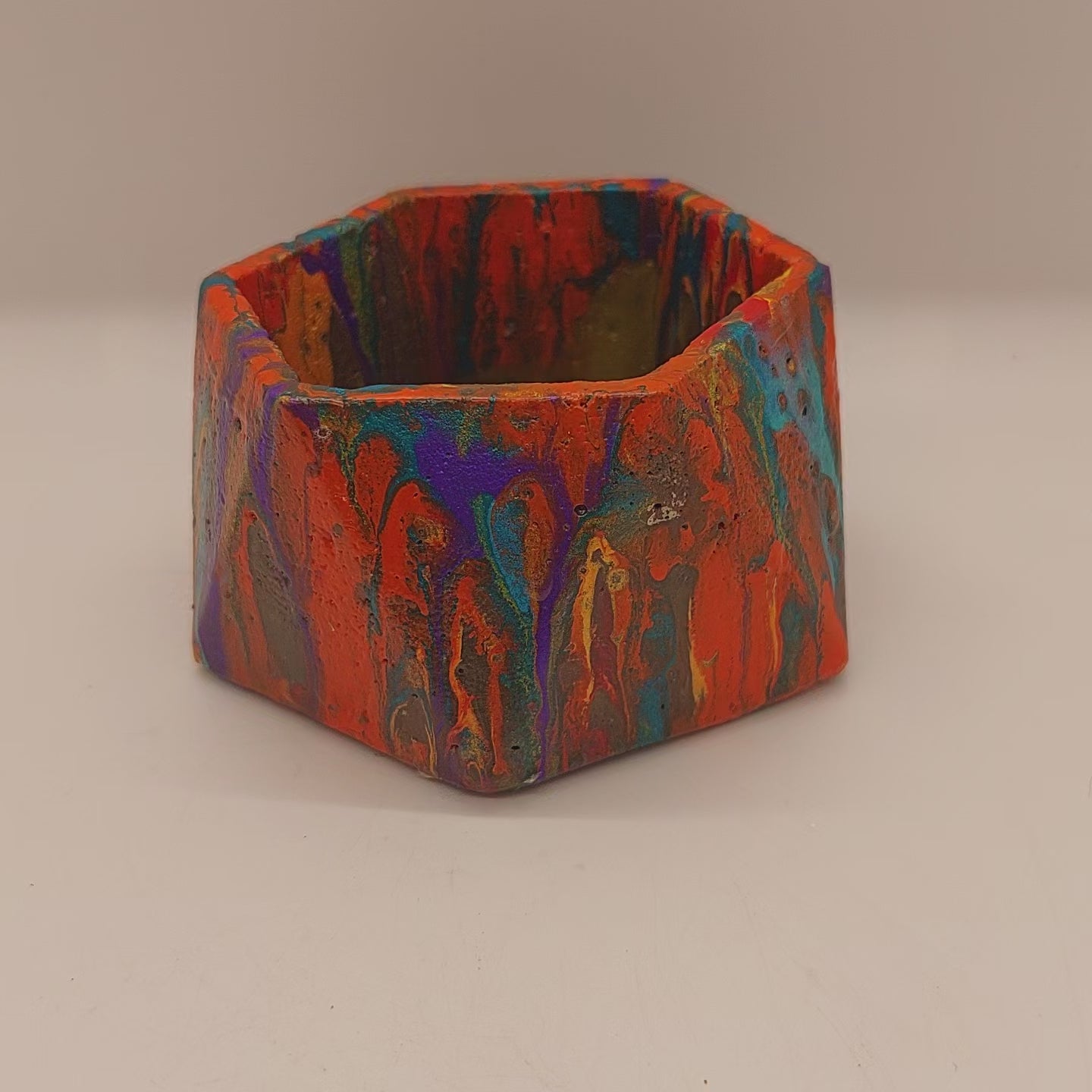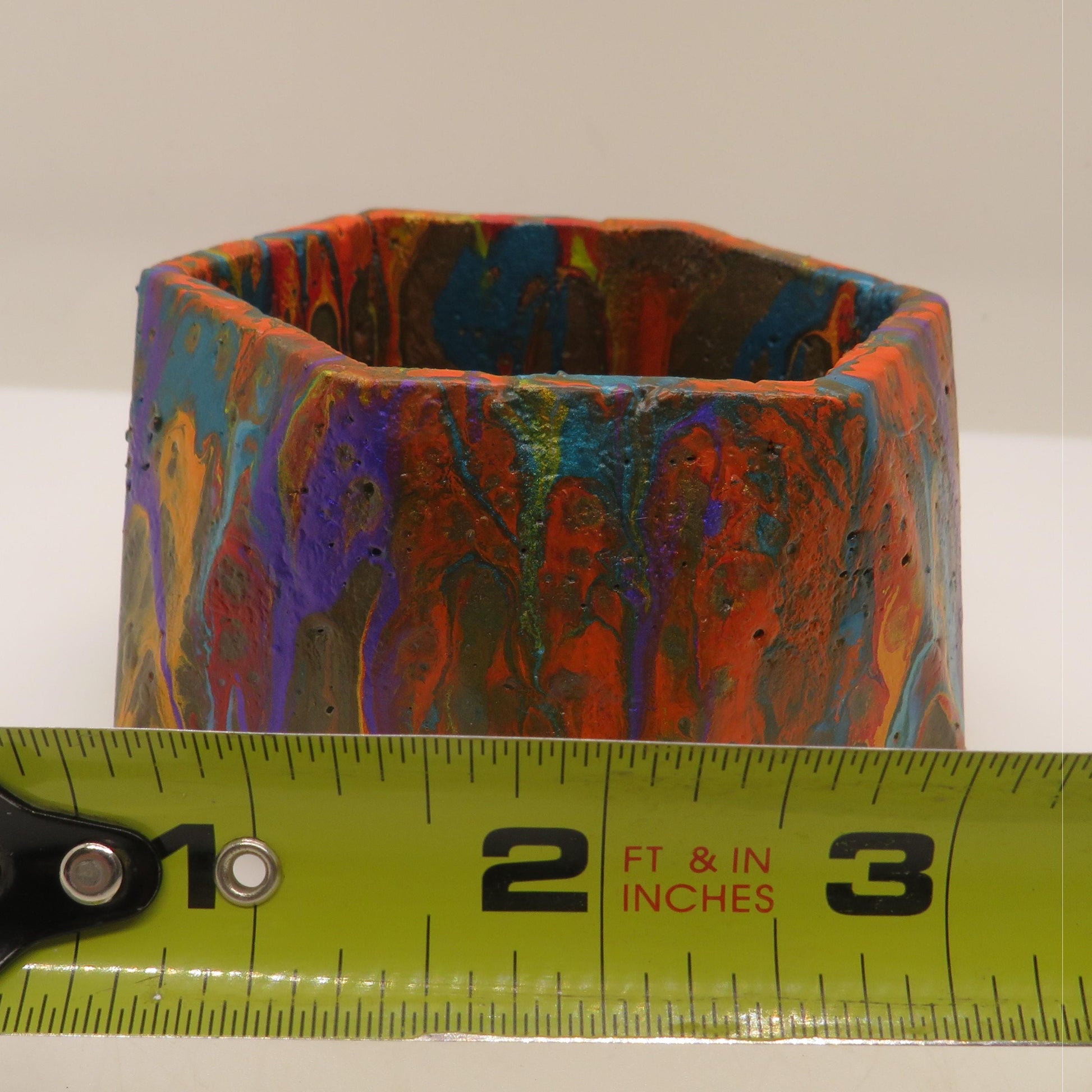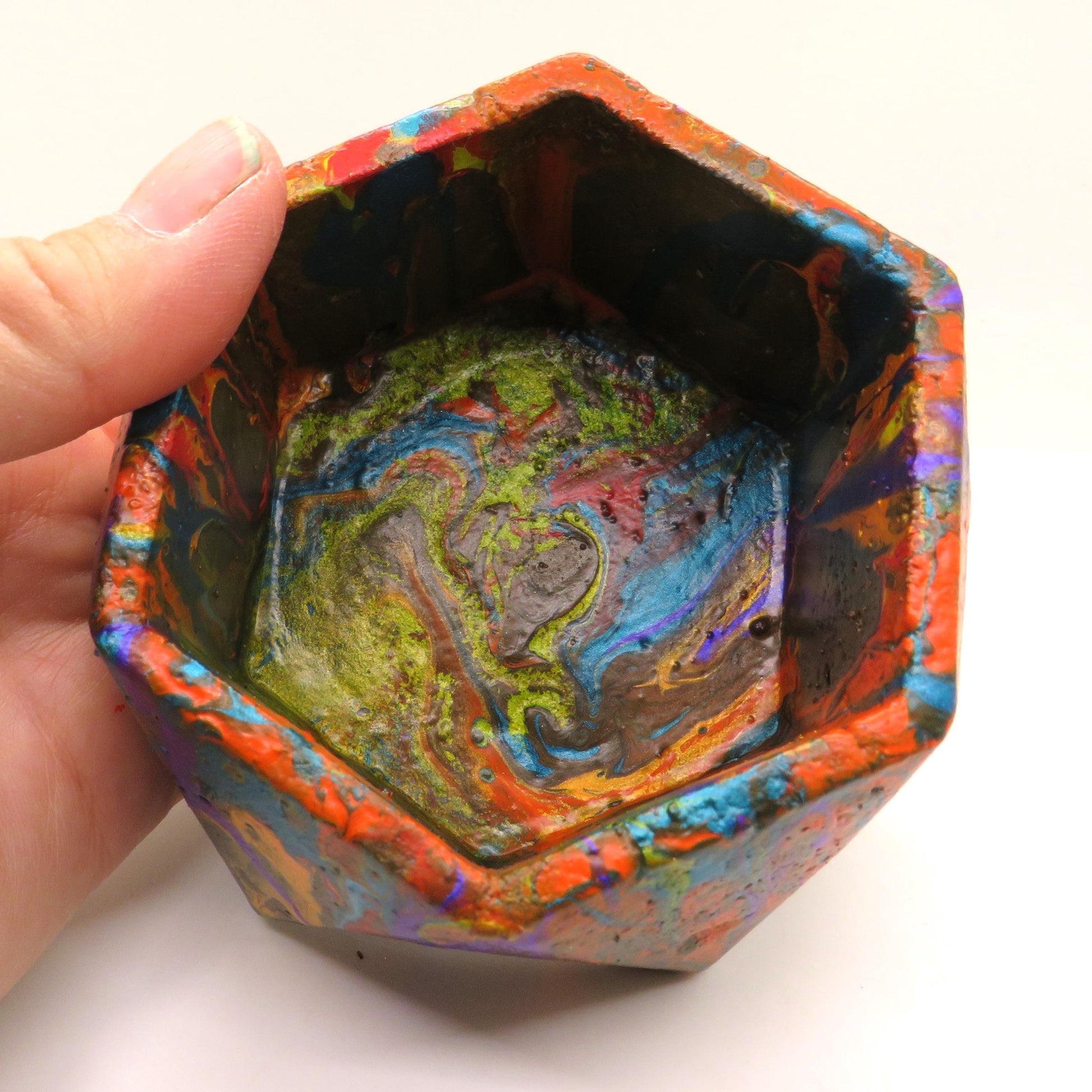 Handmade Hexagon Cement Dish - Candle Holder, Jewelry Box, Succulent Planter with Pour Paint Finish