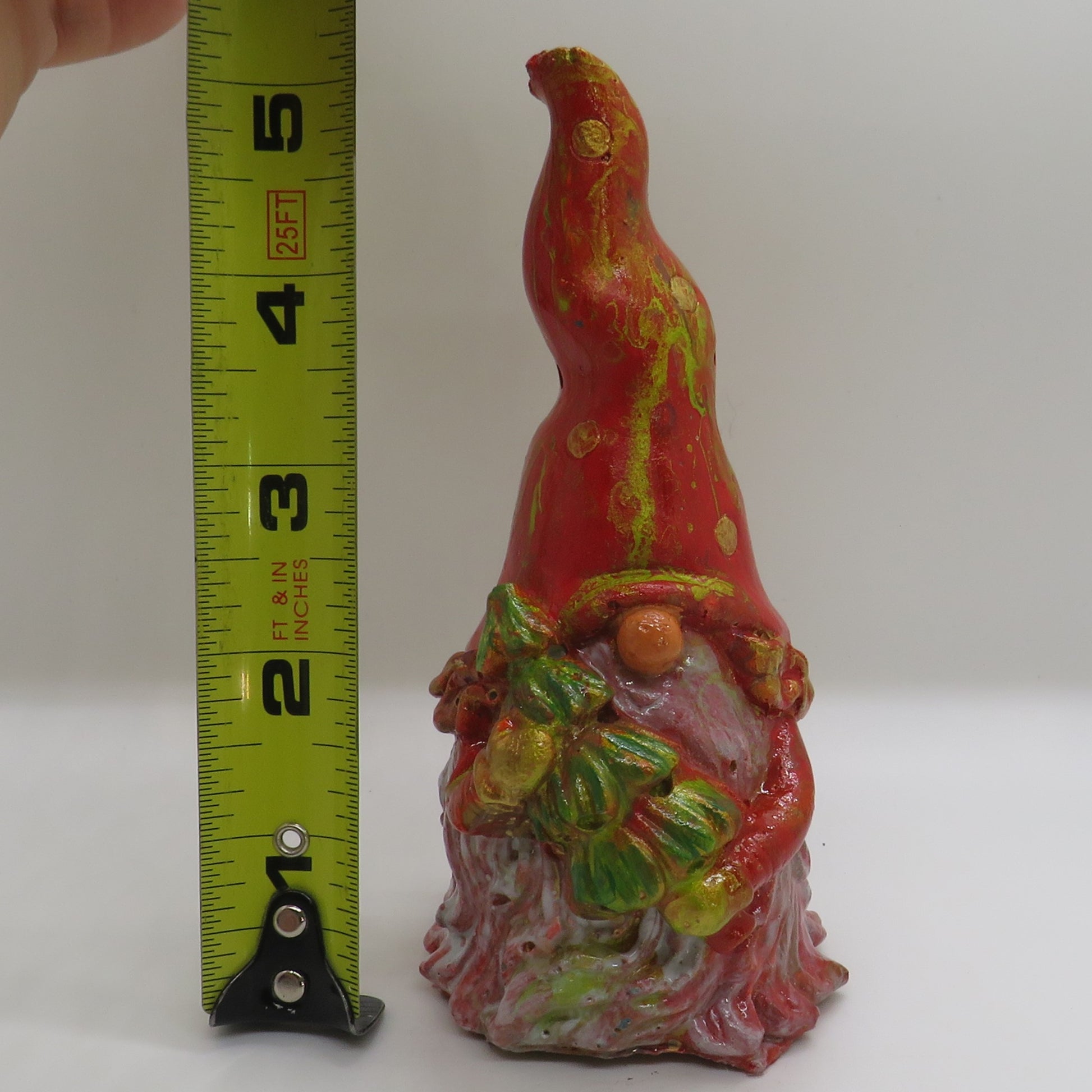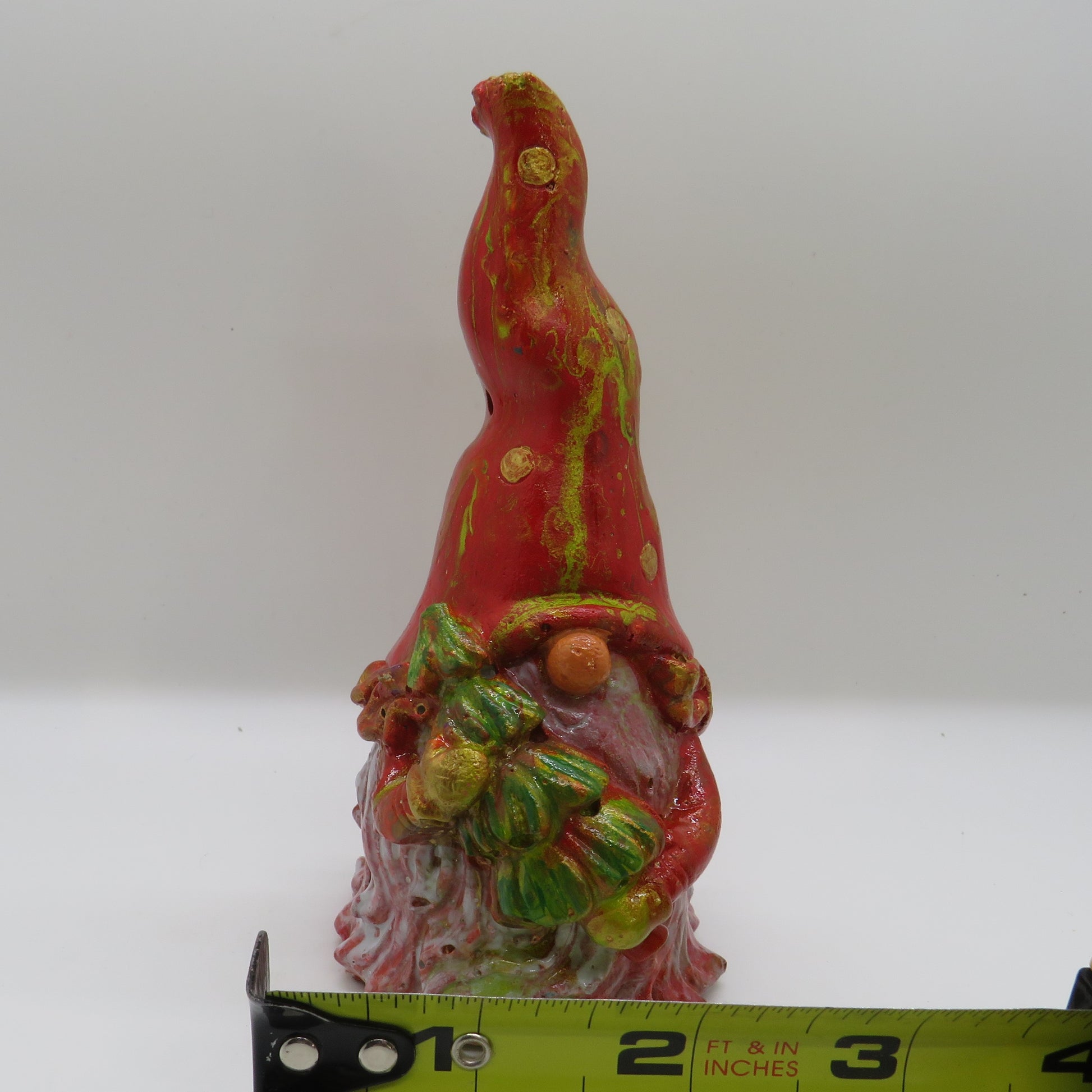 Add a touch of festive charm to your holiday decor with this adorable handmade holiday gnome. Molded from durable cement and beautifully painted using an acrylic pour technique, this gnome is a delightful mix of vibrant seasonal colors. The gnome features a translucent white beard that allows glimpses of the colorful paint underneath, and a charming pointed hat. Perfect for tabletops, mantles, or as a unique gift, this gnome is sure to bring joy to your celebrations. More festive colors are coming soon. Custom color requests are welcome via email!