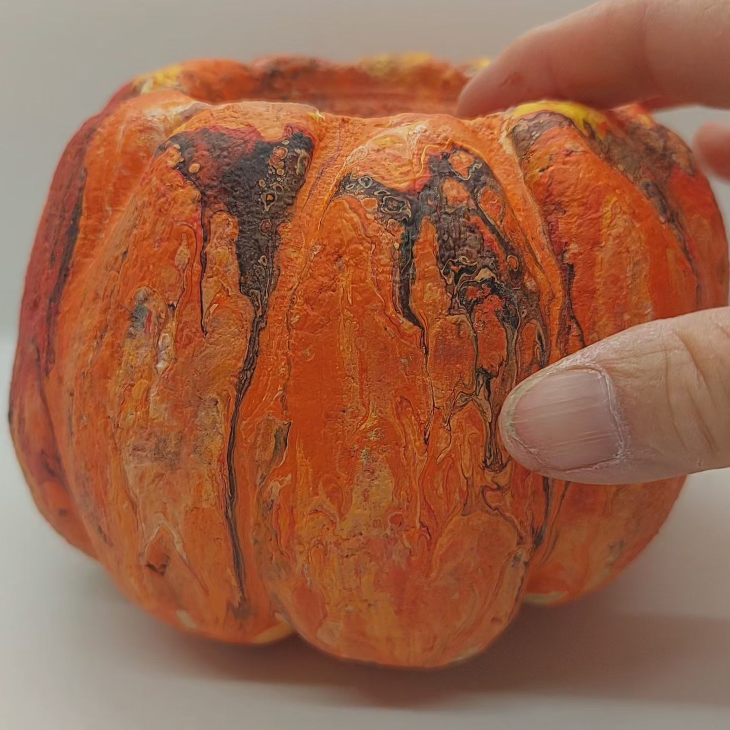 Handmade Hypertufa Pumpkin Planters for Halloween and Thanksgiving - Unique Fluid Art Decorations