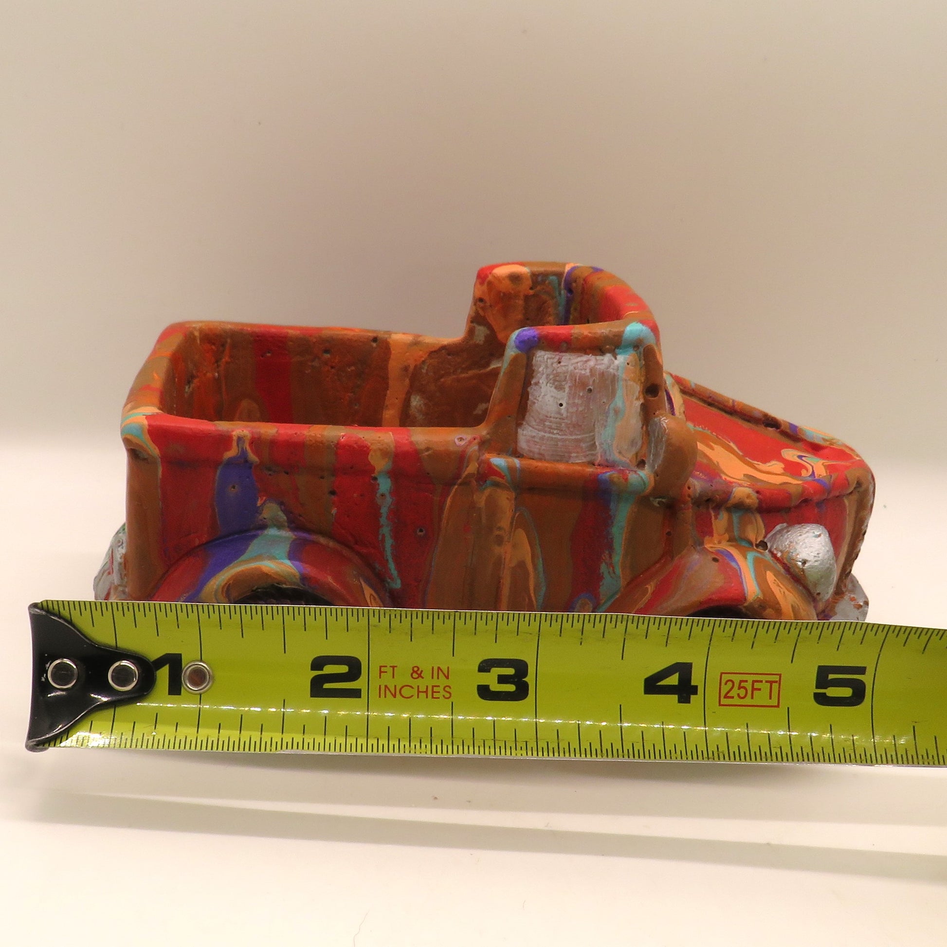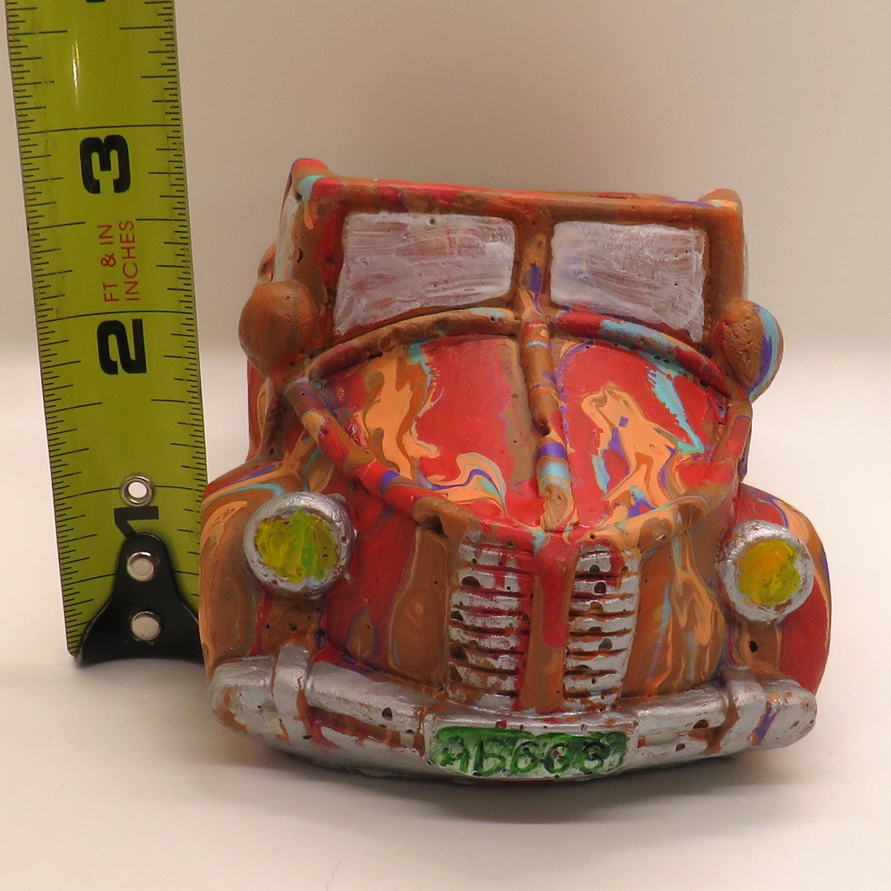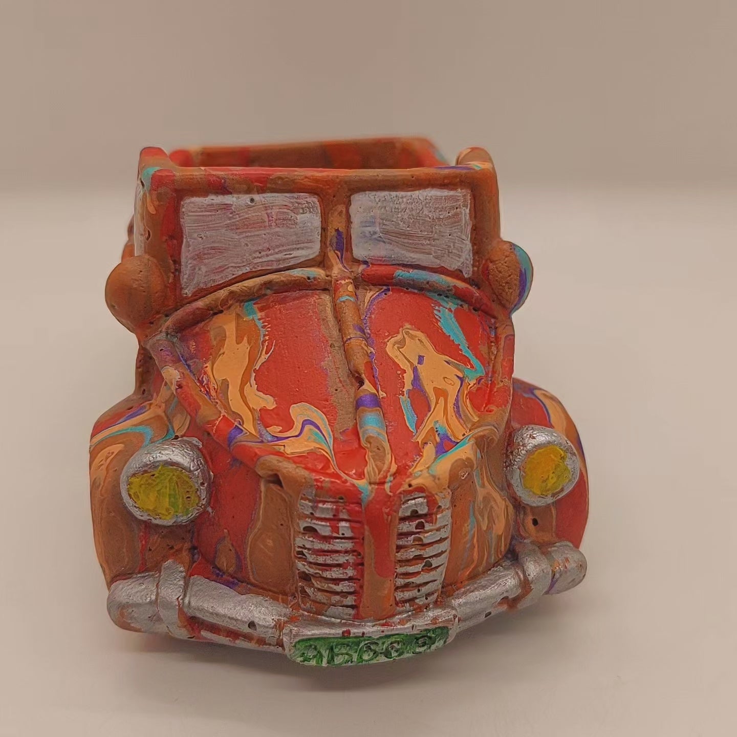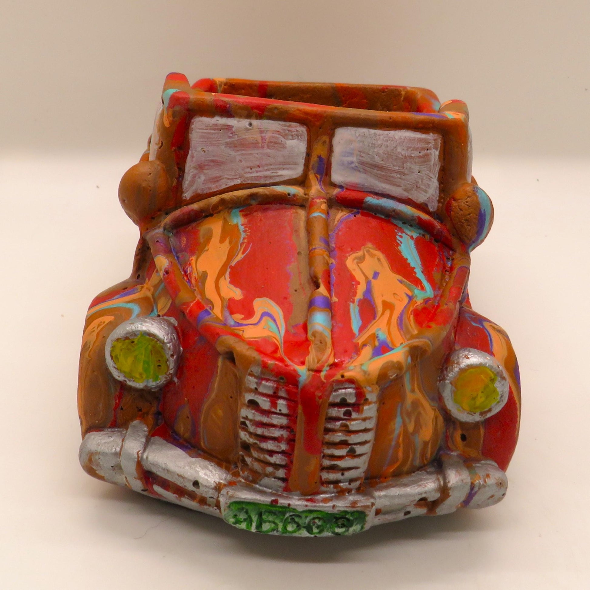 Introducing our handmade retro truck planter, perfect for succulents, candy, candles, or office supplies. Each piece is meticulously molded and hand-painted, ensuring no two are identical. Available in a range of colors, from traditional red, pink, green, yellow, and blue, to bright contemporary pour paint designs. We also offer custom colors and designs. Featuring a drainage hole and painted Colorado license plates (or any state upon request), this charming truck planter is a unique addition to any space. Contact us for custom orders or special requests!