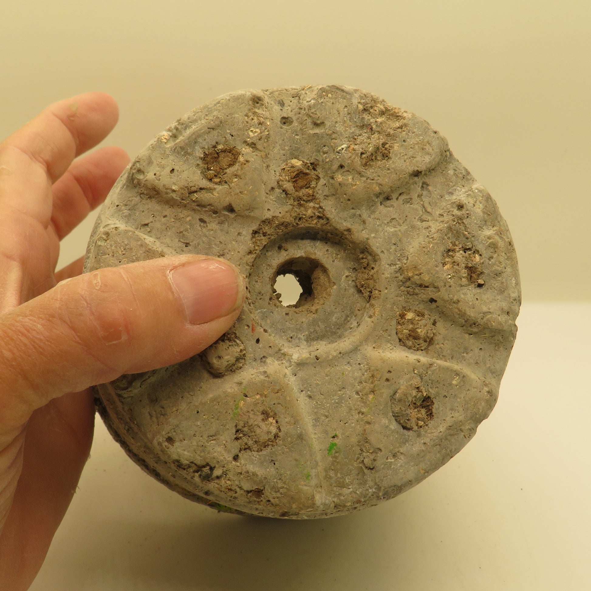 Hypertufa is made with Portland cement, sphagnum moss, and vermiculite. After curing for several weeks/months, the material resembles rock. The finished product is sturdy like cement but weighs about 1/3 as much. This planter has a thick bottom and walls to make it durable. Hypertufa is porous (similar to terra cotta) and allows plants to breathe. The pot can withstand freezing but due to its size, it is recommended to bring in indoors during months with an outdoor freeze.
