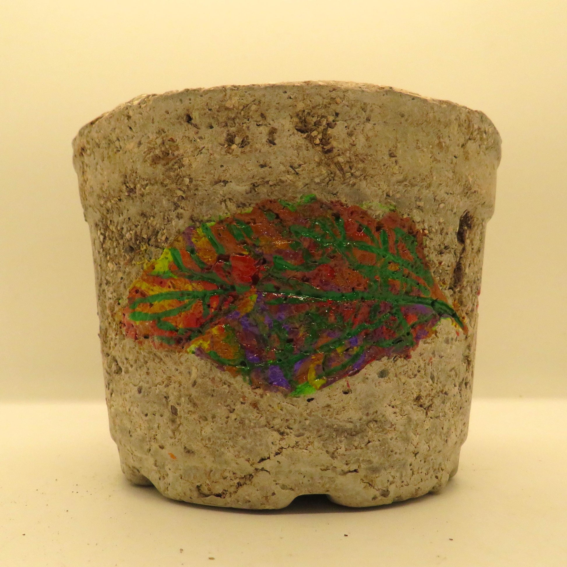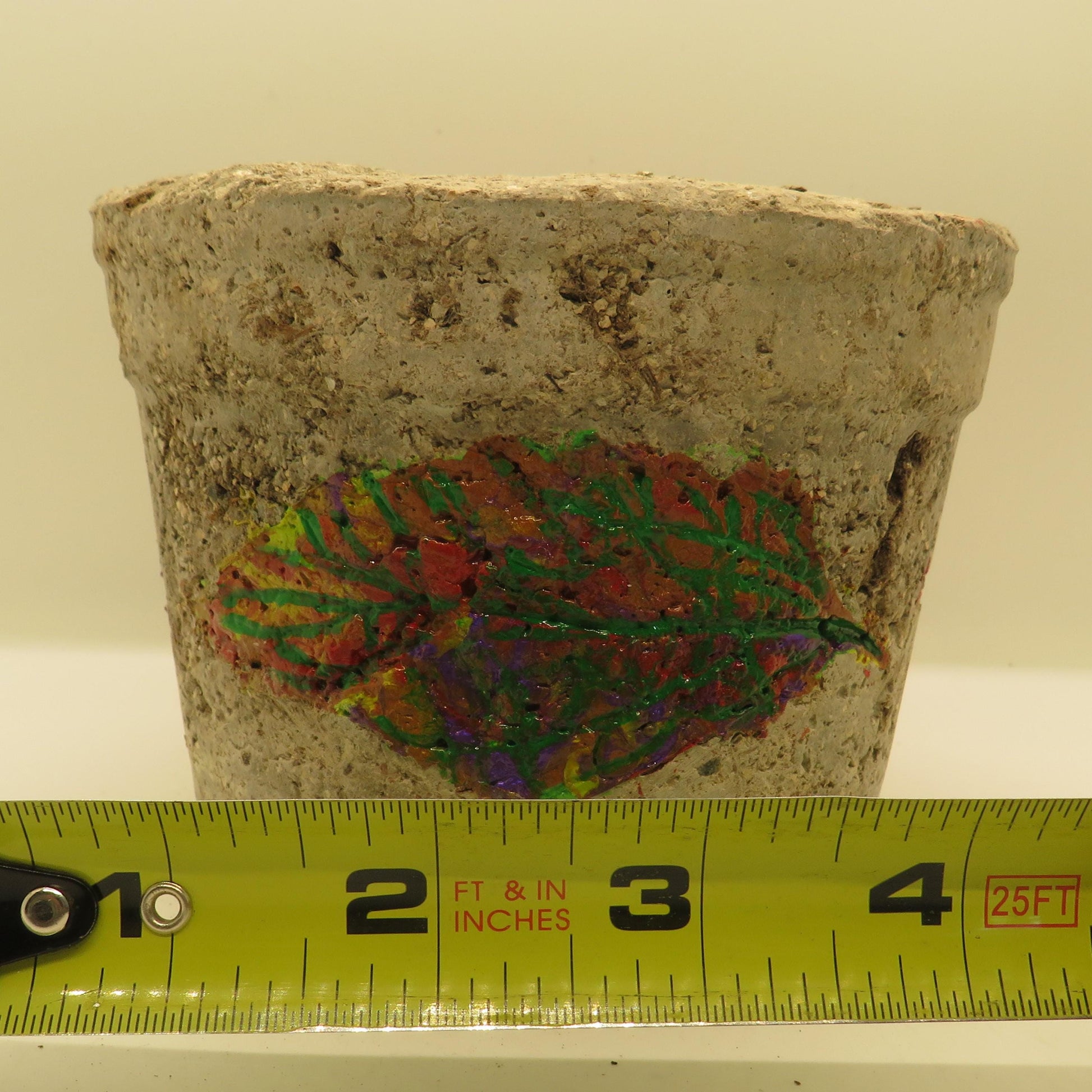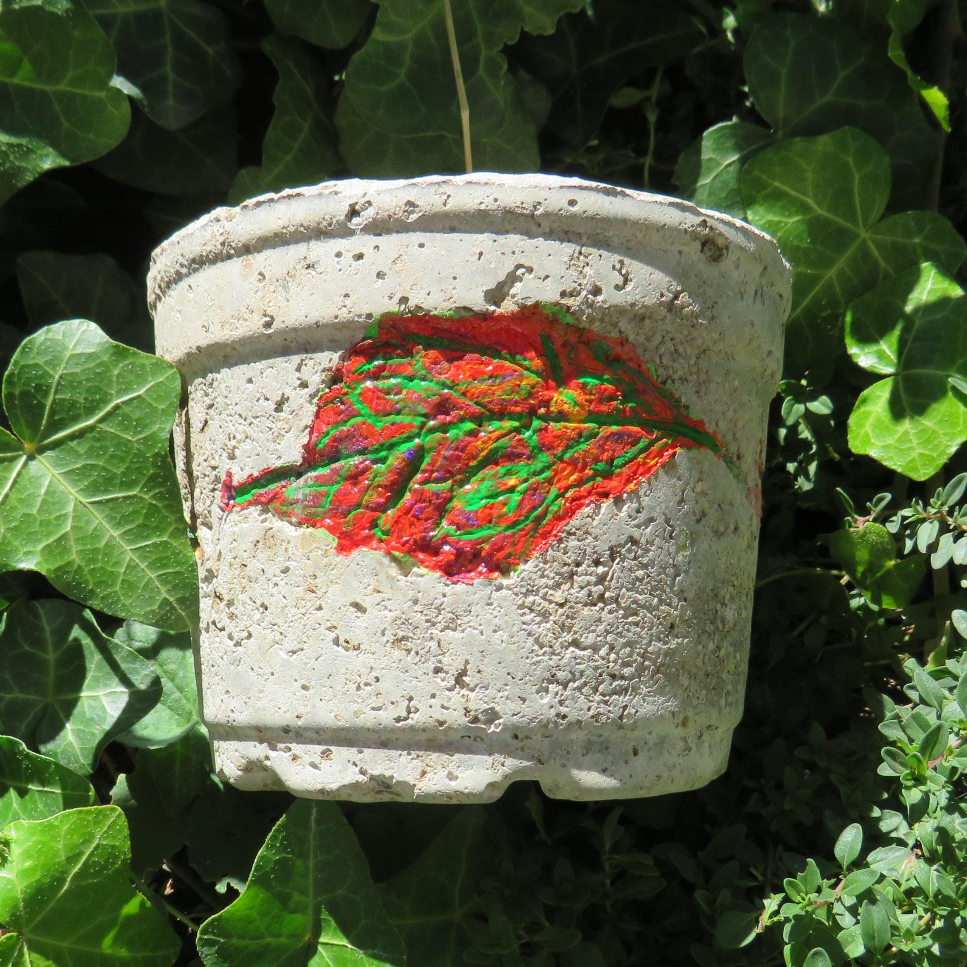 Discover the charm of our rustic handmade hypertufa pot, adorned with delicate fall-colored leaf imprints. This pot, featuring a limestone appearance, is enhanced with vibrant pour paint leaf details created from coleus leaves. Each pot showcases three unique leaf imprints, making every piece one of a kind. Perfect for housing succulents or other small plants, it adds a touch of nature-inspired decor to any space. Whether you're decorating a garden, patio, or indoor setting, this hypertufa pot is a stunning addition that brings earthy elegance and vibrant color into your home.