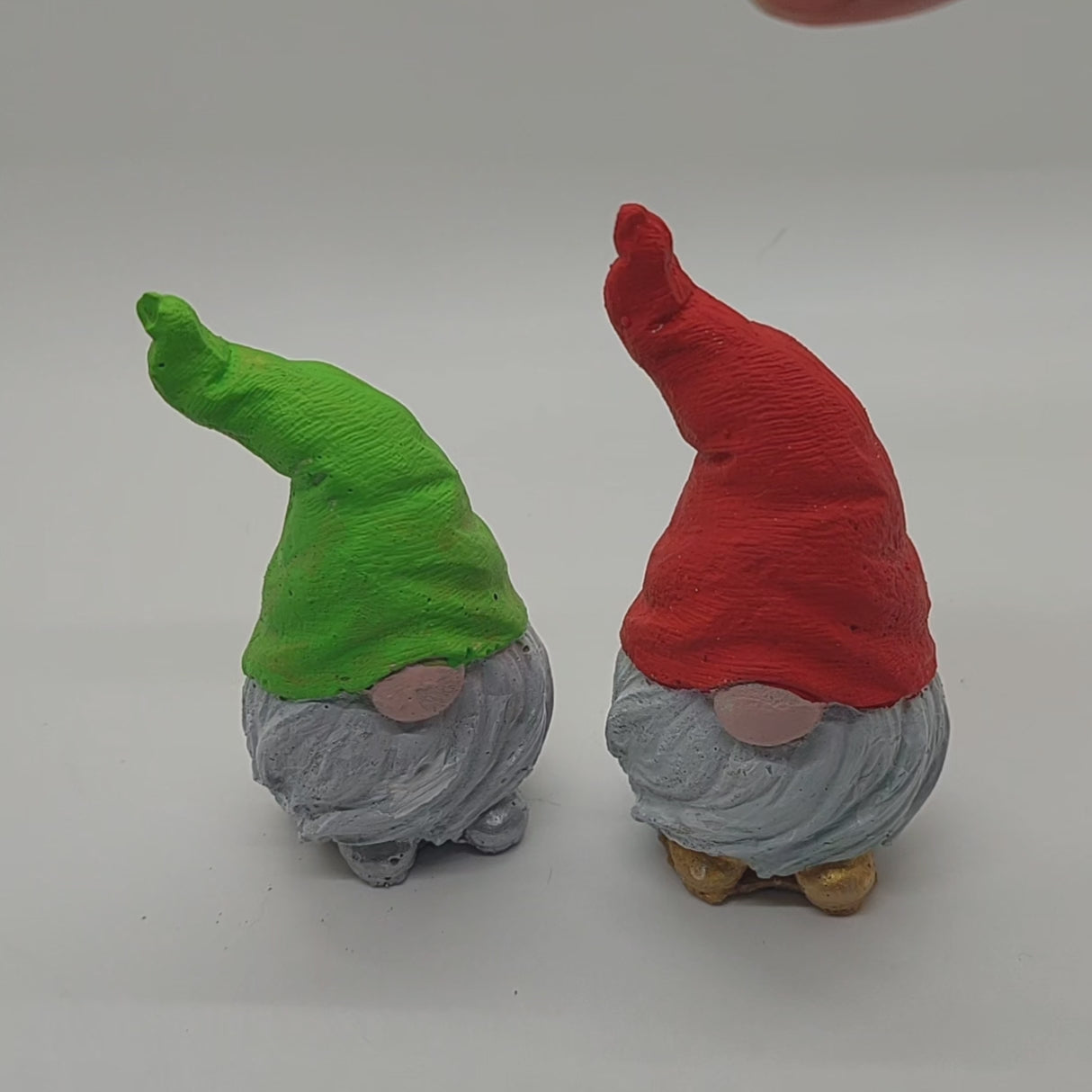 These mineature elves are perfect for holiday or fairy gardens. Delightful accent art for homes and offices, as well. A must-have for any gnome collector! Standard beards are white or grey - see the paragraph below for customized colors. The cement is durable for indoor or outdoor use! Great for fairy gardens, too! Stands 3 inches tall by 2 inches wide and 1.5 inches deep.