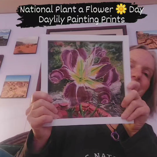 Discover the vibrant elegance of nature through this exquisite hand-painted 8x8 art print featuring a stunning purple daylily amid lush yucca plants. Each brushstroke on this signed piece tells a story of botanical beauty, with rich shades that bring any space to life. This ready-to-frame print adds a personalized touch to your walls and serves as the perfect gift for art enthusiasts and flower lovers alike. Adorn your home with this unique creation that celebrates the harmony of flora in artistic form. Don't miss the chance to own a piece of original wall art that will captivate and inspire. The daylily's name is Mama Cuna.