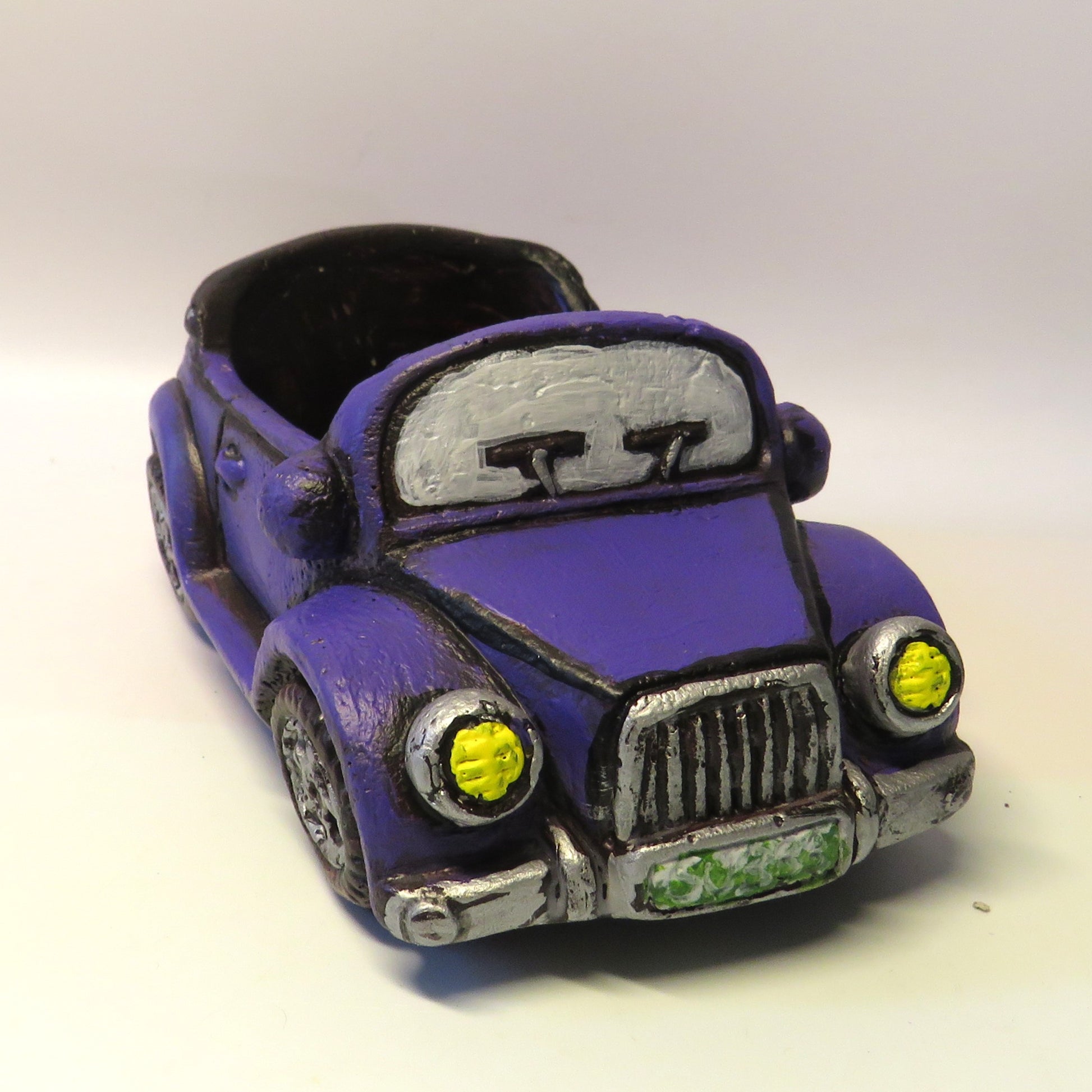 Add a touch of nostalgia to your home with this charming retro convertible car succulent planter. Hand-painted with a vibrant antique finish and a colorful license plate, it's perfect for small succulents with its convenient drain hole. Customize it with your favorite colors and give it as a unique gift. Let your plants ride in style Includes hand-painted antique finish and a Colorado-style colored license plate. Perfect for small succulents, it features a convenient drain hole for optimal plant health. Customize your planter with your favorite colors by contacting me. This unique piece also makes a great gift for car enthusiasts and plant lovers alike. Bring a piece of automotive history to your decor and let your plants ride in style!
