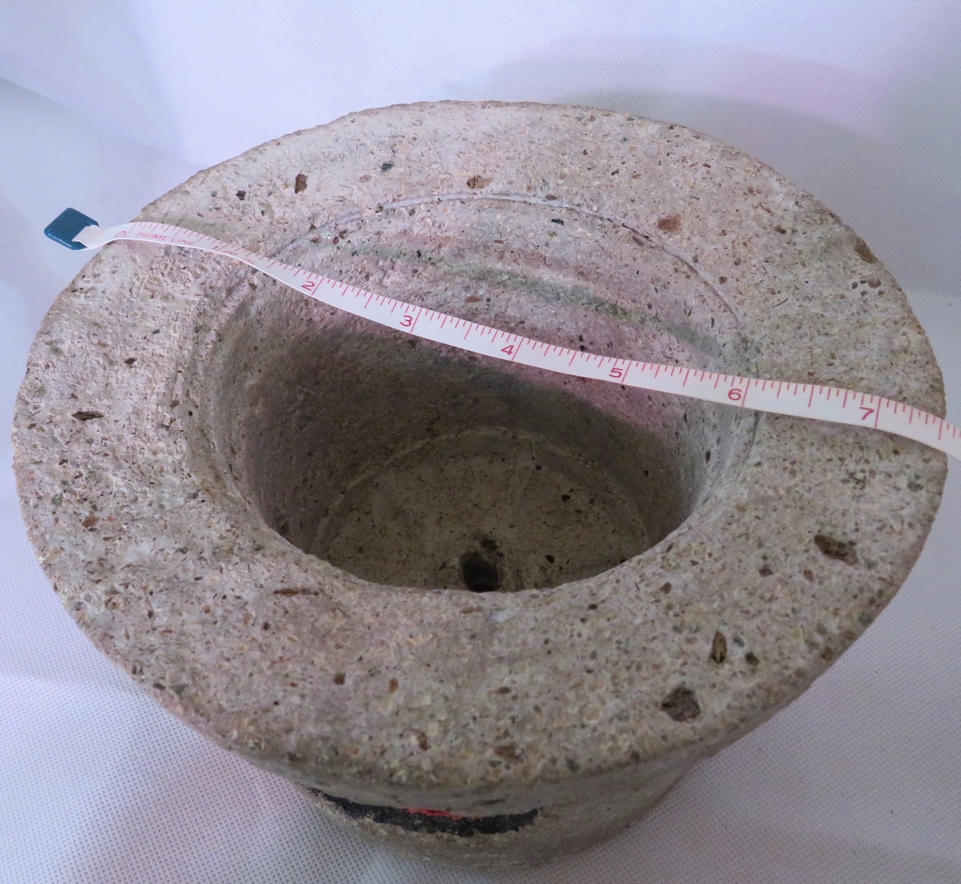 Hypertufa is made with Portland cement, sphagnum moss, and vermiculite. After curing for several weeks/months, the material resembles rock. The finished product is sturdy like cement but weighs about 1/3 as much. This planter has 1 inch + walls to make it durable indoors or out. Hypertufa is porous (similar to terra cotta) and allows plants to breathe. The pot can withstand freezing although it is advised to protect it during freeze-thaw weather.