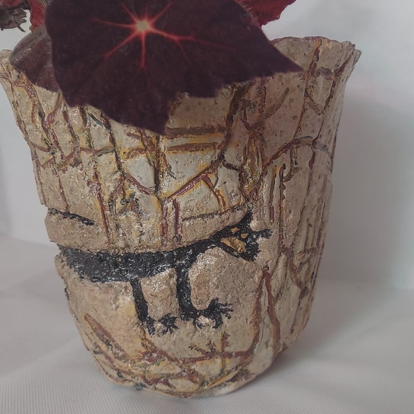 Unique 7 Inch Hypertufa Cat Petroglyph Planter - Indoor/Outdoor Native American Art