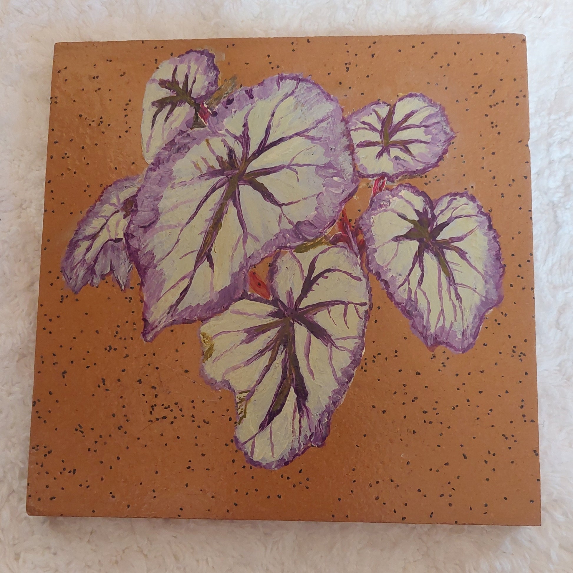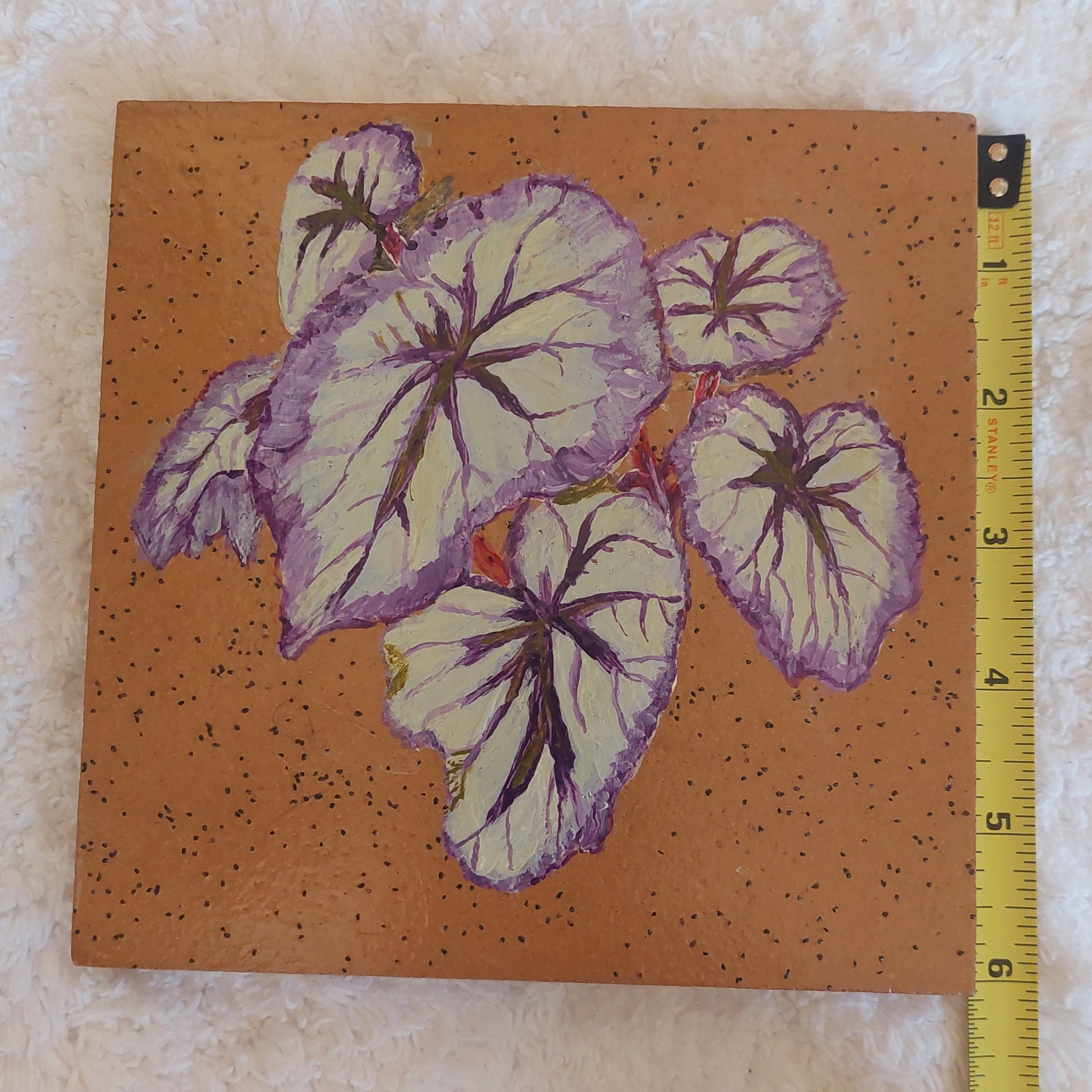 Bring nature indoors with this exquisitely hand-painted Fireworks Begonia tile. A fusion of art and sustainability, each tile is thoughtfully repurposed from Habitat for Humanity, giving it a second life as a piece of your home decor. The vibrant leaves of the begonia are depicted in stunning detail atop a durable ceramic tile, invoking the splendor of a dazzling firework display. Whether used as a trivet to protect your surfaces or hung as wall art, this piece is sure to be a conversation starter. It's not just a tile; it's a statement of eco-conscious elegance and a nod to nature's beauty. Perfect for gifting or treating yourself to a unique work of art. Add a splash of color and a touch of green to your space today!