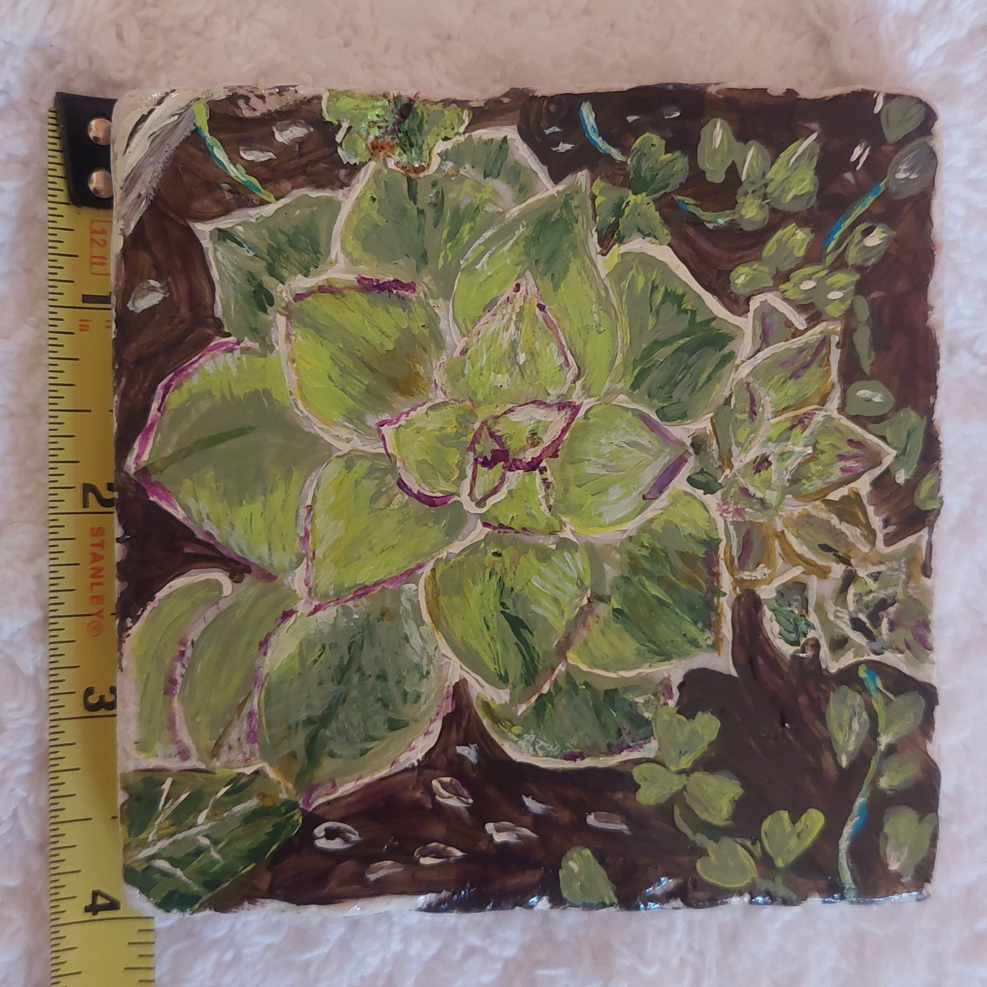 Unique Hand-Painted Succulent Tile Art - Acrylic Coaster Trivet or Wall Decor, Eco-Friendly 4x4