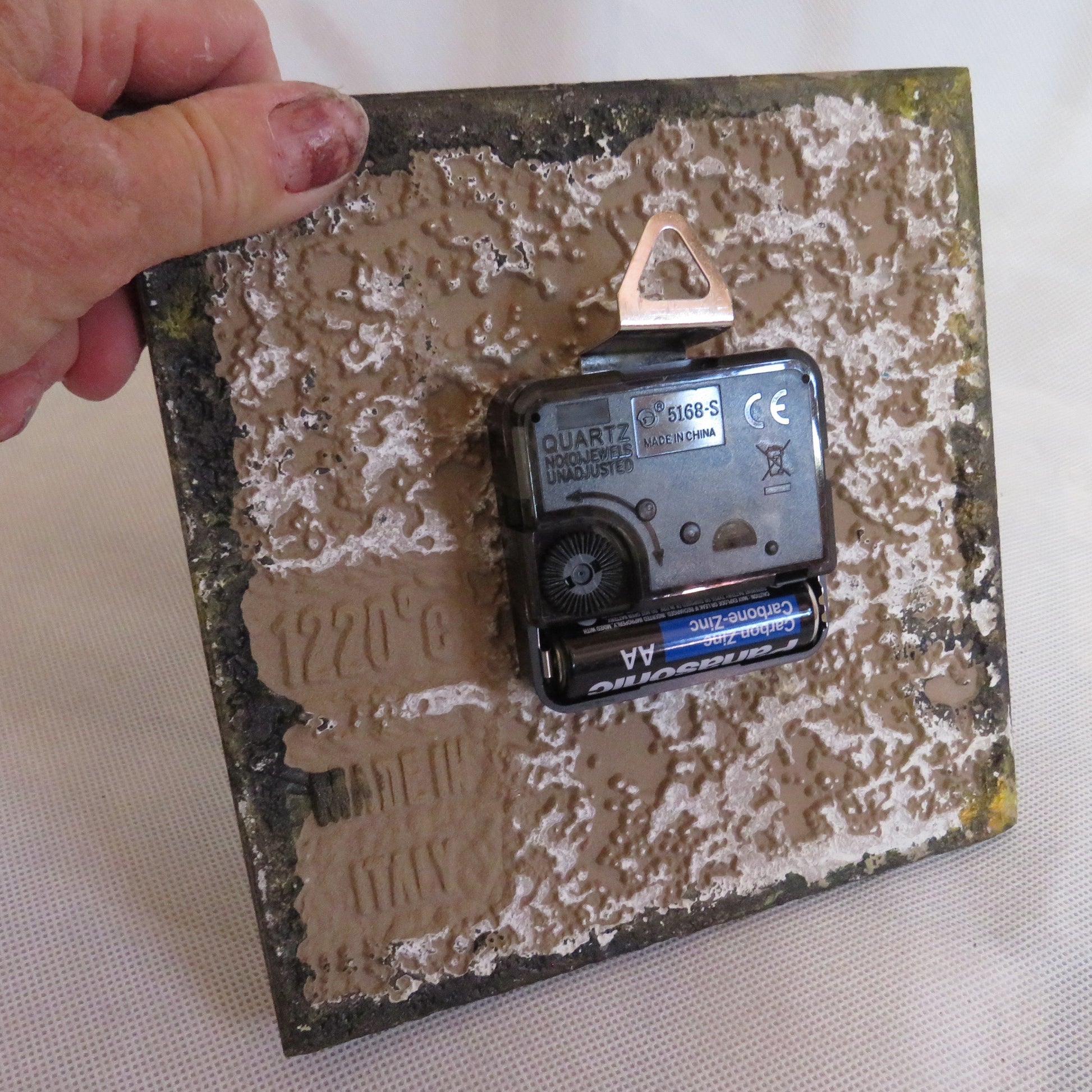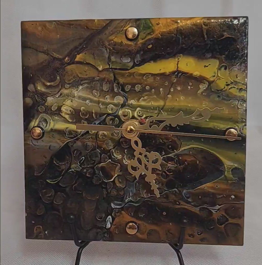 Unique Handmade Eclipse Metallic Gold and Black Pour Paint Clock on Habitat Tile, 6x6 Inch Art Decor