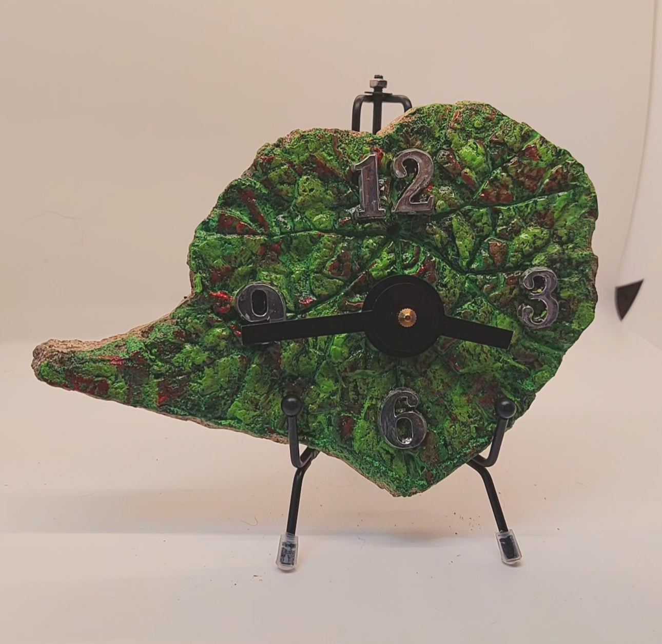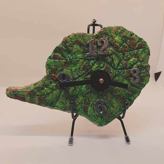 Unique Hypertufa Hand-Painted Begonia Leaf Art Clock - Home Decor Functional Artwork, 7x5 inches
