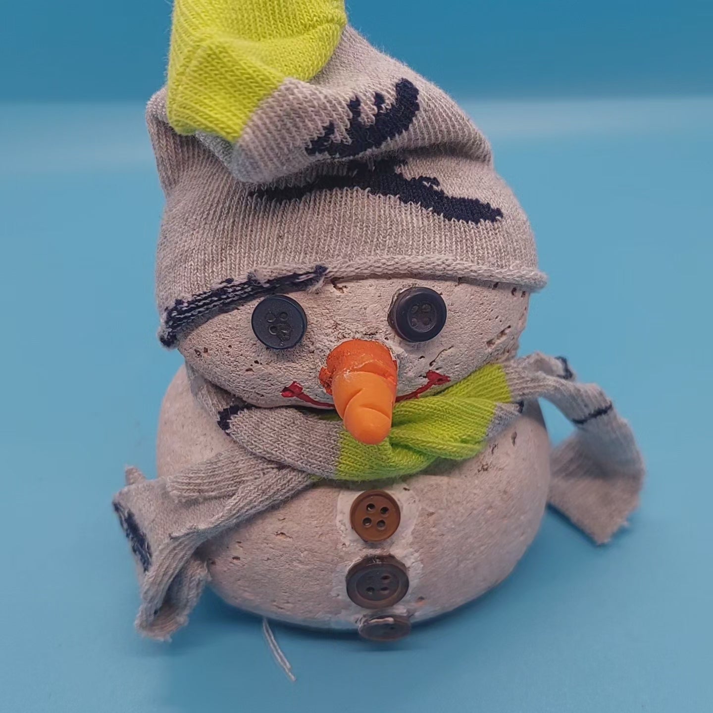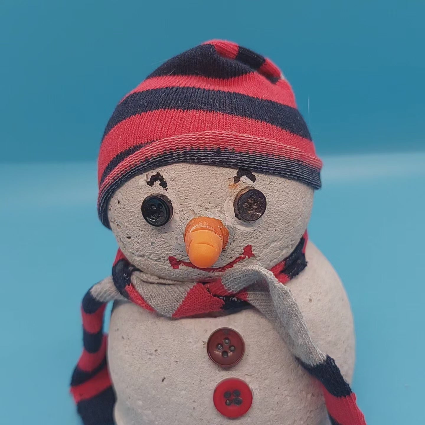Add a touch of whimsy and warmth to your winter décor with this charming hypertufa snowman figurine. Each piece is meticulously handcrafted, ensuring you receive a truly unique item. With its endearing sock hat and coordinating scarf, this snow sculpture captures the innocence of winter joy. Whether perched on your mantel or nestled among your holiday decorations, it evokes the spirit of the season—making it a perfect gift for lovers of all things winter or as a delightful addition to your own festive collection. This small but captivating Cupid and Blitzen-themed snowman is not just a decoration; it's a keepsake to be treasured for years to come.